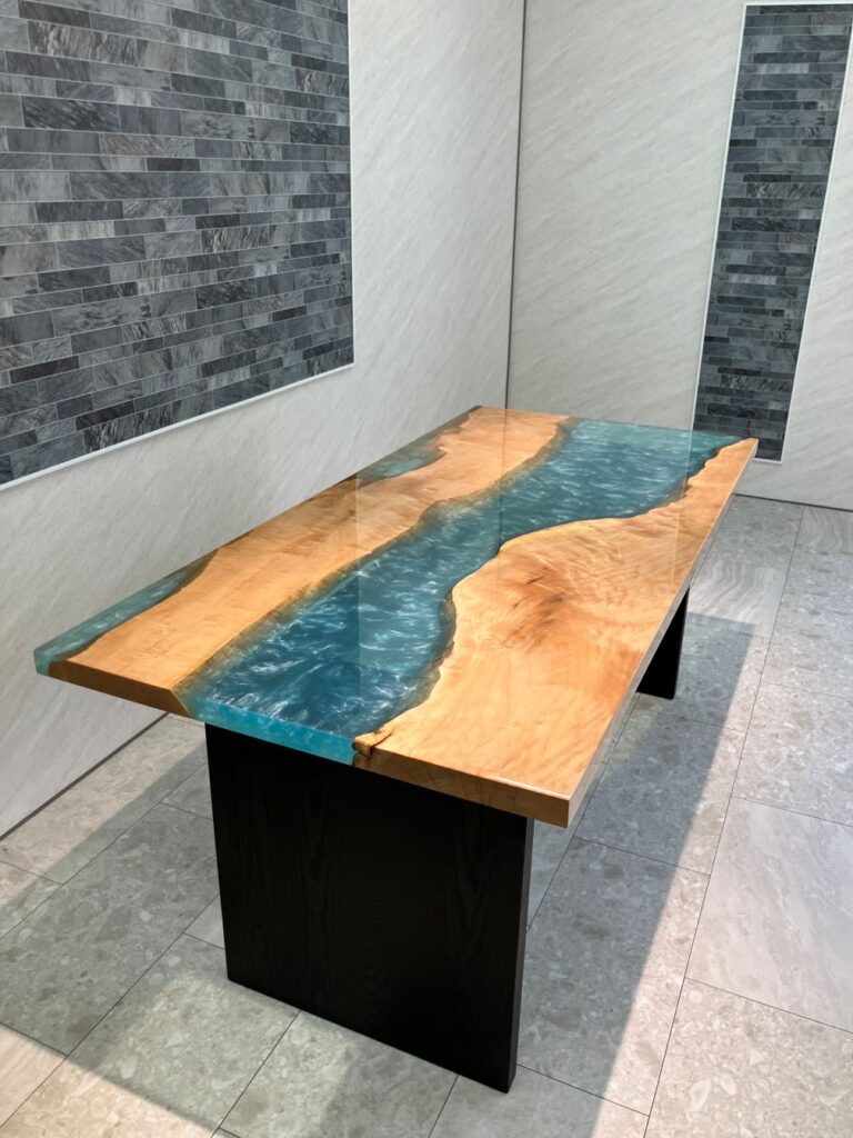 新商品(鏡面塗装テーブル) 2025.10.30 一枚板鏡面テーブル(カエデ+ブルーレジン)R-4 天板詳細 幅(Width)1745mm奥行(Depth)820mm厚み(Thickness)41mm contact (サイトに戻る) other (ほかの商品)